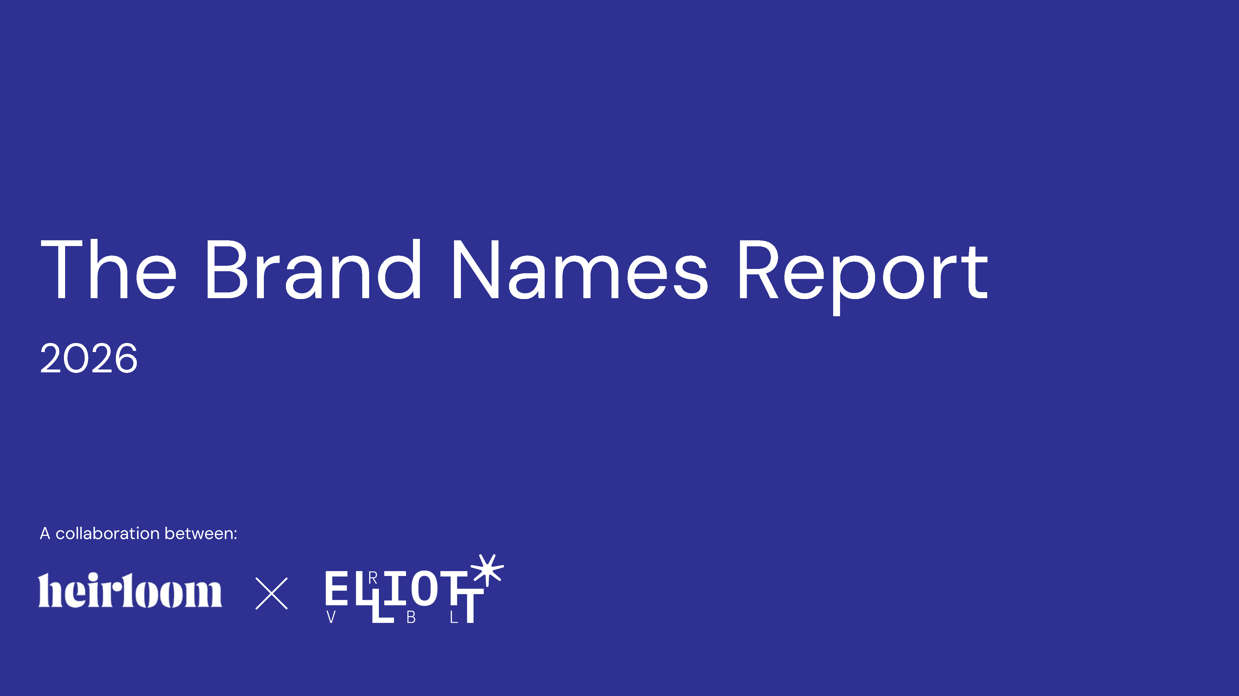 This year, Elliott Verbal teamed up with friend and collaborator Rob Meyerson of Heirloom--who literally wrote the book on Brand Naming--to bring you a comprehensive look at the state of brand names in 2026. Drawing on news headlines, academic research, and our own analyses of name and brand databases, the report is a survey of the brand naming sandbox in which major global enterprises, innovative startups, and everyone in between is playing in. Click below to download.